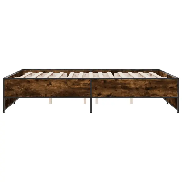 vidaXL Posteljni okvir dimljeni hrast 160x200 cm inž. les in kovina