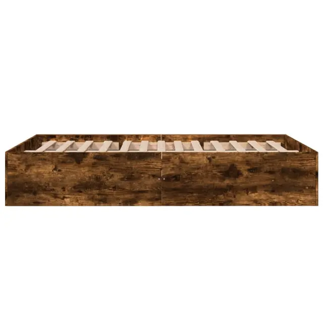 Zagotovite si boljši spanec s tem posteljnim okvirjem! Je prijeten dodatek za vsako spalnico. Vzdržljiv material: Inženirski les se ponaša z izjemno kakovostjo, gladko površino ter močjo, stabilnostjo in odpornostjo na vlago.Letvice za optimalno podporo: Okvir postelje je opremljen z letvicami, ki zagotavljajo osnovno podporo in zračnost vašega ležišča.Moderna zasnova: Svojim notranjim prostorom dodajte moderen stil! Moderen stil notranjih prostorov vključuje čiste linije, minimalističen videz in naravno svetlobo. Dobro je vedeti:Vzmetnica ni priložena tej postelji. Ponujamo različno izbiro ležišč. V naši trgovini si lahko ogledate ustrezne vzmetnice.Barva: Dimljeni hrastMaterial posteljnega okvirja: Inženirski lesMaterial letvic: Vezan lesCelotne dimenzije: 193 x 138 x 35 cm (D x Š x V)Velikost primerne vzmetnice: 135 x 190 cm (Š x D) (vzmetnica ni priložena)Potrebno sestavljanje: Da 3281039