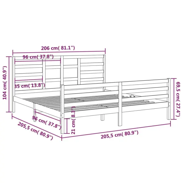Ustvarite moderno spalnico s tem lesenim posteljnim okvirjem! To je praktičen in dekorativen dodatek za vaše notranje prostore. Vrhunska trdna borovina: Trdna borovina je čudovit naravni material. Borovina ima ravne vzorce, grče pa dajejo materialu njegov značilen, rustikalen videz.Močan posteljni okvir: Lesen okvir zagotavlja trdnost in stabilnost. Letvice iz vezanega lesa omogočajo dobro porazdelitev teže in zagotavljajo, da vzmetnica ostane na mestu ob vsakem zasuku in obračanju med spanjem.Privlačen dizajn: Vzglavje in vznožje sta oblikovana tako dekorativno kot tudi praktično. Dodaja edinstven stil in udobje. Dobro je vedeti:Paket vsebuje samo posteljni okvir. Vzmetnica ni priložena. V naši trgovini si lahko ogledate ustrezne vzmetnice.Nekateri deli vzglavja so zaradi prostorskih omejitev zapakirani v škatlah v okvirju postelje.Ta posteljni okvir je primeren za vzmetnico velikosti 200 x 200 cm.Material posteljnega okvirja: Trdna borovina (neobdelana)Material letvic: Vezan lesCelotne dimenzije: 205,5 x 206 x 104 cm (D x Š x V)Dimenzije vzglavja: 206 x 4 x 104 cm (Š x G x V)Velikost primerne vzmetnice: 200 x 200 cm (Š x D) (vzmetnica ni priložena)Potrebno sestavljanje: DaPaket vsebuje:1 x Posteljni okvir1 x Vzglavje1 x Vznožje 3105880