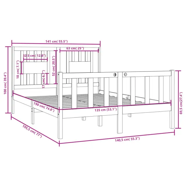 Kaj je boljše od dobrega spanca po napornem dnevu? Ta klasični leseni posteljni okvir je popolna izbira za vašo posteljo in odličen dodatek za sproščanje po dolgem dnevu. Vrhunska trdna borovina: Trdna borovina je čudovit naravni material. Borovina ima ravne vzorce, grče pa dajejo materialu njegov značilen, rustikalen videz.Letvice za dodatno podporo: Letvice ponujajo dodatno podporo za vašo posteljo. Podaljša življenjsko dobo vaše vzmetnice, saj absorbira večino obremenitev in teže na postelji.Praktično vzglavje: Vzglavje nudi dodatno oporo in poveča raven udobja. Prav tako obdrži vzglavnike na mestu za boljši spanec. Dobro je vedeti:Paket vsebuje samo posteljni okvir. Vzmetnica ni priložena. V naši trgovini si lahko ogledate ustrezne vzmetnice.Nekateri deli vzglavja so zaradi prostorskih omejitev zapakirani v škatlah v okvirju postelje.Ta posteljni okvir je primeren za vzmetnico velikosti 135 x 190 cm (4FT Small Double).Material: Trdna borovina (neobdelana)Celotne dimenzije: 195,5 x 141 x 100 cm (D x Š x V)Dimenzije vzglavja: 141 x 4 x 100 cm (D x Š x V)Velikost primerne vzmetnice: 135 x 190 cm (Š x D) (4FT6 Double) (vzmetnica ni priložena)Potrebno sestavljanje: DaPaket vsebuje:1 x Posteljni okvir1 x Vzglavje 3104103