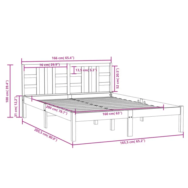 Ta klasični posteljni okvir s preprosto, a brezčasno zasnovo je praktičen in okrasen dodatek za vašo spalnico. Trdna borovina: Trdna borovina je naravno lep material. Borovina ima ravne vzorce, grče pa dajejo materialu njegov značilen, rustikalen videz.Letvice iz vezanega lesa: Letvice iz vezanega lesa omogočajo dobro porazdelitev teže in zagotavljajo, da vzmetnica ostane na mestu ob vsakem zasuku in obračanju med spanjem.Udobna izkušnja: Kombinirajte ta lesen posteljni okvir in vzglavje ter uživajte v svojih večerih. Ta lesena postelja bo zagotovo izpolnila vaše potrebe, ne glede na to, ali ležite na vzglavju in berete ali samo sanjate sladke sanje. Opomba:Vzmetnica ni priložena. V naši trgovini si lahko ogledate ustrezne vzmetnice.Ta posteljni okvir je primeren za vzmetnico velikosti 160 x 200 cm.Material posteljnega okvirja: Trdna borovina (neobdelana)Material letvic: Vezan lesDimenzije posteljnega okvirja: 205,5 x 165,5 x 31 cm (D x Š x V)Dimenzije vzglavja: 166 x 4 x 100 cm (D x Š x V)Velikost primerne vzmetnice: 160 x 200 cm (Š x D) (vzmetnica ni priložena)Potrebno sestavljanje: DaPaket vsebuje:1 x Posteljni okvir1 x Vzglavje 3105415