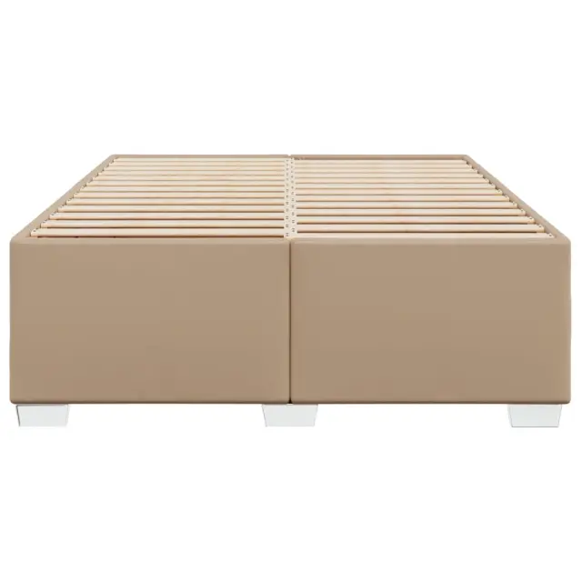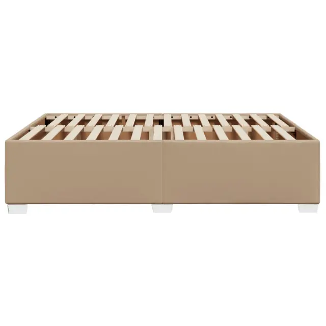 Zagotovite si boljši spanec s tem posteljnim okvirjem! Je prijeten dodatek za vsako spalnico. Dolgotrajno in enostavno vzdrževanje: Umetno usnje je zelo trpežen material, ki je odporen na madeže, zato ga zlahka očistite z vlažno krpo. Njegova gladka površina mu daje eleganten videz, ki spominja na pravo usnje.Letvice za optimalno podporo: Ta posteljni okvir je opremljen z letvicami, ki zagotavljajo osnovno podporo in zračnost vašega ležišča.Stabilne in vzdržljive noge: Ta postelja je podprta z robustnimi nogami, ki zagotavljajo stabilnost, varnost in trdnost. Dobro je vedeti:Vzmetnica ni priložena tej postelji. Ponujamo različno izbiro ležišč. V naši trgovini si lahko ogledate ustrezne vzmetnice.Barva: KapučinoMaterial: Umetno usnje (75 % polivinilklorid, 5 % bombaž, 20 % poliester), vezan les, inženirski les, trden borov lesDimenzije: 200 x 140 x 46 cm (D x Š x V)Velikost primerne vzmetnice: 140 x 200 cm (Š x D) (vzmetnica ni priložena)Utrjene plastične nogicePodporne noge iz trdnega borovega lesaPotrebno sestavljanje: Da 3284563