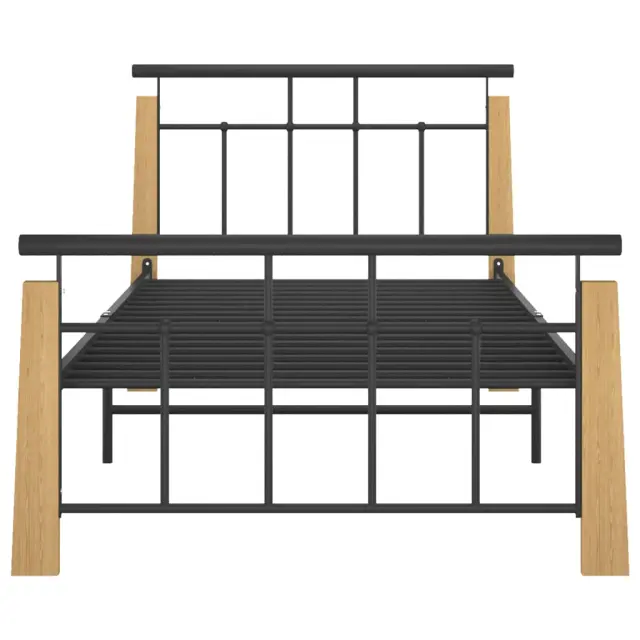 vidaXL Posteljni okvir kovina in trdna hrastovina 100x200 cm