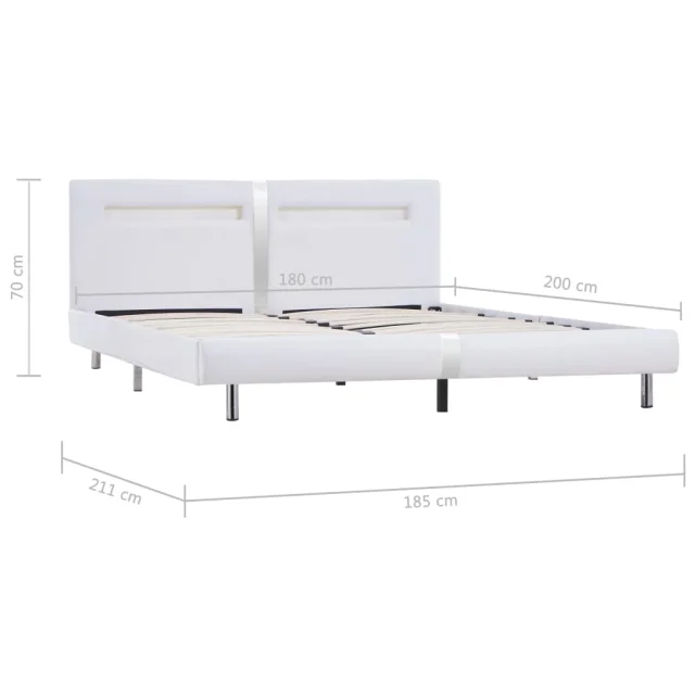 Ta posteljni okvir odlikuje preprost in eleganten dizajn, dekorju v vaši spalnici pa bo dodal pridih elegantnega šarma. Izdelan je iz lesa in jekla, zato je ta posteljni okvir precej močan in trpežen. Noge iz trdnega lesa postelji dodajajo dodatno stabilnost. Poleg tega je postelja oblečena v trpežno umetno usnje, zato je vabljiva in preprosta za čiščenje. Poleg tega lahko moč, svetlobo in različne utripajoče barve LED svetlobnega traku priročno nastavite s priloženim popolnoma funkcionalnim daljinskim upravljalnikom s 24 tipkami, da boste ustvarili osupljivo svetlobno predstavo. Ta posteljni okvir je primeren za vzmetnico velikosti 180 x 200 cm.