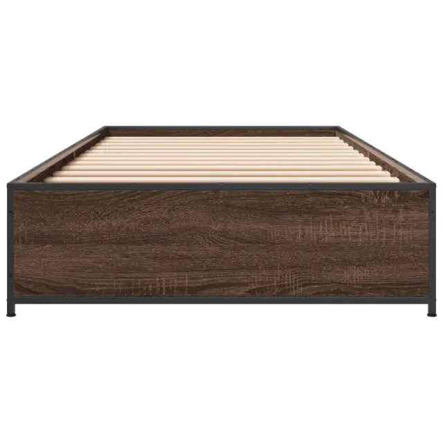vidaXL Posteljni okvir rjav hrast 90x190 cm inženirski les in kovina