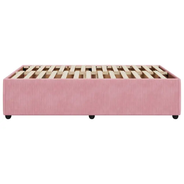 Zagotovite si boljši spanec s tem posteljnim okvirjem! Je prijeten dodatek za vsako spalnico. Mehak in udoben material: Vlažna tkanina iz žameta ima mehko in gladko površino, ki zagotavlja prijeten občutek ter vam zagotavlja toploto in popolno udobje.Letvice za optimalno podporo: Ta posteljni okvir je opremljen z letvicami, ki zagotavljajo osnovno podporo in zračnost vašega ležišča.Stabilne in vzdržljive noge: Ta postelja je podprta z robustnimi nogami, ki zagotavljajo stabilnost, varnost in trdnost. Dobro je vedeti:Vzmetnica ni priložena tej postelji. Ponujamo različno izbiro ležišč. V naši trgovini si lahko ogledate ustrezne vzmetnice.Barva: RozaMaterial: Material: Žamet (100 % poliester), vezan les, inženirski les, trden borov lesDimenzije: 200 x 120 x 46 cm (D x Š x V)Velikost primerne vzmetnice: 120 x 200 cm (Š x D) (vzmetnica ni priložena)Utrjene plastične nogicePodporne noge iz trdnega borovega lesaPotrebno sestavljanje: Da 3285005