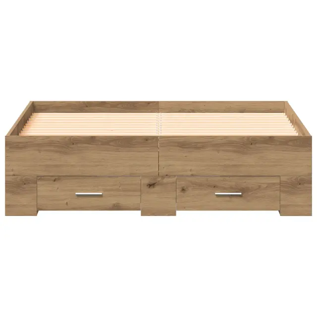 Ta posteljni okvir je super izbira za vsak prostor, saj združuje moderno zasnovo in praktičnost. Doda kanček elegance v vašo spalnico in zagotavlja dober spanec. Hrastov zaključek lepo pokaže naravno teksturo lesa, kar ga naredi za pravi trendovski kos v vaši spalnici.