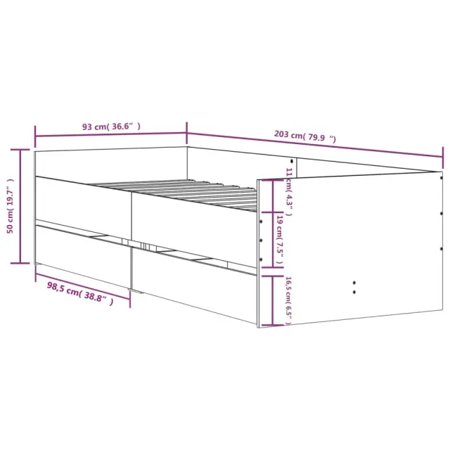 vidaXL Posteljni okvir s predali bel 90x200 cm
