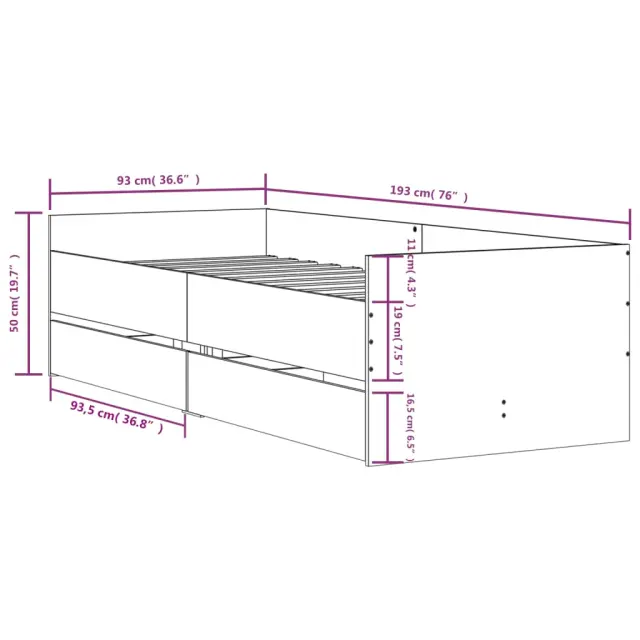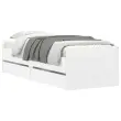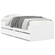 Dodajte svoji spalnici moderen pridih s tem posteljnim okvirjem s predali! Predstavlja praktičen in dekorativen dodatek za vaš bivalni prostor. Vzdržljiv material: Posteljni okvir je izdelan iz inženirskega lesa. Inženirski les se ponaša z izjemno kakovostjo, gladko površino ter močjo, stabilnostjo in odpornostjo na vlago.Trdne letvice: Letvice iz vezanega lesa omogočajo dobro porazdelitev teže in zagotavljajo, da vzmetnica ostane na mestu ob vsakem zasuku in obračanju med spanjem.Funkcija shranjevanja: Priloženi posteljni predali nudijo dovolj prostora za shranjevanje potrebščin, da bo soba čista in urejena. Dobro je vedeti:Vzmetnica ni priložena tej postelji. Ponujamo različno izbiro ležišč. V naši trgovini si lahko ogledate ustrezne vzmetnice.Barva: BelaMaterial posteljnega okvirja: Inženirski lesMaterial letvic: Vezan lesCelotne dimenzije: 193 x 93 x 50 cm (D x Š x V)Dimenzije predala (vsak): 93,5 x 43 x 16,5 cm (D x Š x V)Velikost primerne vzmetnice: 90 x 190 cm (Š x D) (vzmetnica ni priložena)Potrebno sestavljanje: DaPaket vsebuje:1 x Posteljni okvir2 x Predal 3207350