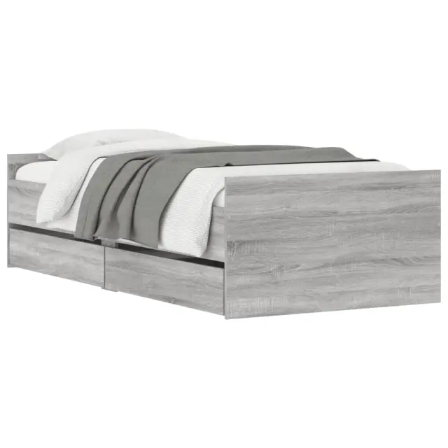 Dodajte svoji spalnici moderen pridih s tem posteljnim okvirjem s predali! Predstavlja praktičen in dekorativen dodatek za vaš bivalni prostor. Vzdržljiv material: Posteljni okvir je izdelan iz inženirskega lesa. Inženirski les se ponaša z izjemno kakovostjo, gladko površino ter močjo, stabilnostjo in odpornostjo na vlago.Trdne letvice: Letvice iz vezanega lesa omogočajo dobro porazdelitev teže in zagotavljajo, da vzmetnica ostane na mestu ob vsakem zasuku in obračanju med spanjem.Funkcija shranjevanja: Priloženi posteljni predali nudijo dovolj prostora za shranjevanje potrebščin, da bo soba čista in urejena. Dobro je vedeti:Vzmetnica ni priložena tej postelji. Ponujamo različno izbiro ležišč. V naši trgovini si lahko ogledate ustrezne vzmetnice.Barva: Siva sonomaMaterial posteljnega okvirja: Inženirski lesMaterial letvic: Vezan lesCelotne dimenzije: 203 x 102 x 50 cm (D x Š x V)Dimenzije predala (vsak): 98,5 x 47 x 16,5 cm (D x Š x V)Velikost primerne vzmetnice: 100 x 200 cm (Š x D) (vzmetnica ni priložena)Potrebno sestavljanje: DaPaket vsebuje:1 x Posteljni okvir2 x Predal 3207369