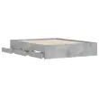Dodajte svoji spalnici moderen pridih s tem posteljnim okvirjem s predali! Predstavlja praktičen in dekorativen dodatek za vaš bivalni prostor. Vzdržljiv material: Posteljni okvir je izdelan iz inženirskega lesa. Inženirski les se ponaša z izjemno kakovostjo, gladko površino ter močjo, stabilnostjo in odpornostjo na vlago.Trdne letvice: Letvice iz vezanega lesa omogočajo dobro porazdelitev teže in zagotavljajo, da vzmetnica ostane na mestu ob vsakem zasuku in obračanju med spanjem.Funkcija shranjevanja: Priloženi posteljni predali nudijo dovolj prostora za shranjevanje potrebščin, da bo soba čista in urejena. Dobro je vedeti:Vzmetnica ni priložena tej postelji. Ponujamo različno izbiro ležišč. V naši trgovini si lahko ogledate ustrezne vzmetnice.Barva: Betonsko sivaMaterial posteljnega okvirja: Inženirski lesMaterial letvic: Vezan lesCelotne dimenzije: 193 x 143 x 33 cm (D x Š x V)Dimenzije predala (vsak): 62 x 30 x 15 cm (D x Š x V)Velikost primerne vzmetnice: 140 x 190 cm (Š x D) (vzmetnica ni priložena)Potrebno sestavljanje: DaPaket vsebuje:1 x Posteljni okvir6 x Predal 3207304