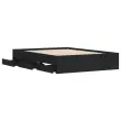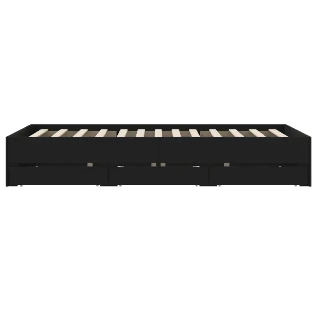 Dodajte svoji spalnici moderen pridih s tem posteljnim okvirjem s predali! Predstavlja praktičen in dekorativen dodatek za vaš bivalni prostor. Vzdržljiv material: Posteljni okvir je izdelan iz inženirskega lesa. Inženirski les se ponaša z izjemno kakovostjo, gladko površino ter močjo, stabilnostjo in odpornostjo na vlago.Trdne letvice: Letvice iz vezanega lesa omogočajo dobro porazdelitev teže in zagotavljajo, da vzmetnica ostane na mestu ob vsakem zasuku in obračanju med spanjem.Funkcija shranjevanja: Priloženi posteljni predali nudijo dovolj prostora za shranjevanje potrebščin, da bo soba čista in urejena. Dobro je vedeti:Vzmetnica ni priložena tej postelji. Ponujamo različno izbiro ležišč. V naši trgovini si lahko ogledate ustrezne vzmetnice.Barva: ČrnaMaterial posteljnega okvirja: Inženirski lesMaterial letvic: Vezan lesCelotne dimenzije: 203 x 123 x 33 cm (D x Š x V)Dimenzije predala (vsak): 65 x 30 x 15,5 cm (D x Š x V)Velikost primerne vzmetnice: 120 x 200 cm (Š x D) (vzmetnica ni priložena)Potrebno sestavljanje: DaPaket vsebuje:1 x Posteljni okvir6 x Predal 3207281