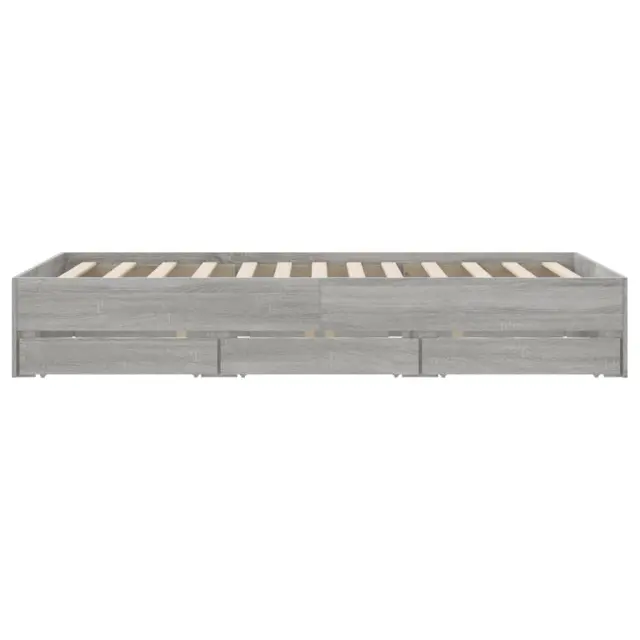 Dodajte svoji spalnici moderen pridih s tem posteljnim okvirjem s predali! Predstavlja praktičen in dekorativen dodatek za vaš bivalni prostor. Vzdržljiv material: Posteljni okvir je izdelan iz inženirskega lesa. Inženirski les se ponaša z izjemno kakovostjo, gladko površino ter močjo, stabilnostjo in odpornostjo na vlago.Trdne letvice: Letvice iz vezanega lesa omogočajo dobro porazdelitev teže in zagotavljajo, da vzmetnica ostane na mestu ob vsakem zasuku in obračanju med spanjem.Funkcija shranjevanja: Priloženi posteljni predali nudijo dovolj prostora za shranjevanje potrebščin, da bo soba čista in urejena. Dobro je vedeti:Vzmetnica ni priložena tej postelji. Ponujamo različno izbiro ležišč. V naši trgovini si lahko ogledate ustrezne vzmetnice.Barva: Siva sonomaMaterial posteljnega okvirja: Inženirski lesMaterial letvic: Vezan lesCelotne dimenzije: 193 x 123 x 33 cm (D x Š x V)Dimenzije predala (vsak): 62 x 30 x 15 cm (D x Š x V)Velikost primerne vzmetnice: 120 x 190 cm (Š x D) (vzmetnica ni priložena)Potrebno sestavljanje: DaPaket vsebuje:1 x Posteljni okvir6 x Predal 3207320