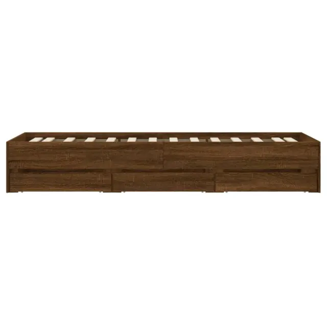 Dodajte svoji spalnici moderen pridih s tem posteljnim okvirjem s predali! Predstavlja praktičen in dekorativen dodatek za vaš bivalni prostor. Vzdržljiv material: Posteljni okvir je izdelan iz inženirskega lesa. Inženirski les se ponaša z izjemno kakovostjo, gladko površino ter močjo, stabilnostjo in odpornostjo na vlago.Trdne letvice: Letvice iz vezanega lesa omogočajo dobro porazdelitev teže in zagotavljajo, da vzmetnica ostane na mestu ob vsakem zasuku in obračanju med spanjem.Funkcija shranjevanja: Priloženi posteljni predali nudijo dovolj prostora za shranjevanje potrebščin, da bo soba čista in urejena. Dobro je vedeti:Vzmetnica ni priložena tej postelji. Ponujamo različno izbiro ležišč. V naši trgovini si lahko ogledate ustrezne vzmetnice.Barva: Rjav hrastMaterial posteljnega okvirja: Inženirski lesMaterial letvic: Vezan lesCelotne dimenzije: 203 x 102 x 33 cm (D x Š x V)Dimenzije predala (vsak): 65 x 30 x 15,5 cm (D x Š x V)Velikost primerne vzmetnice: 100 x 200 cm (Š x D) (vzmetnica ni priložena)Potrebno sestavljanje: DaPaket vsebuje:1 x Posteljni okvir6 x Predal 3207293