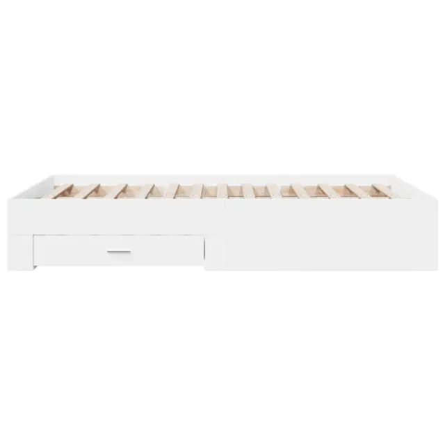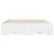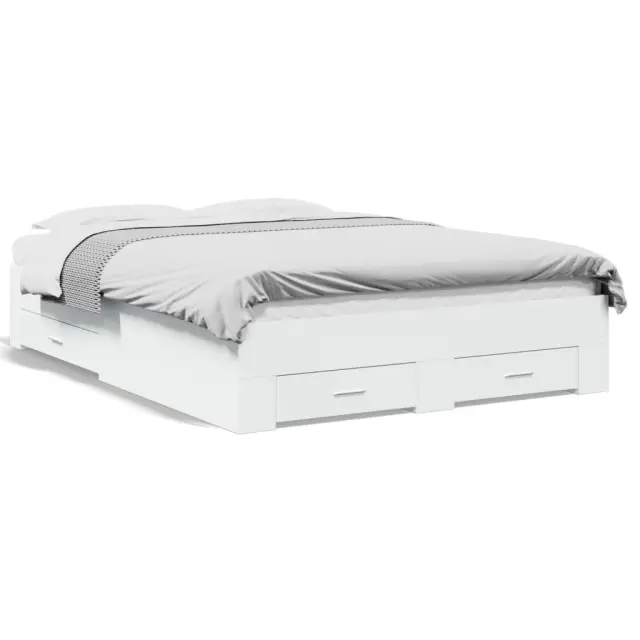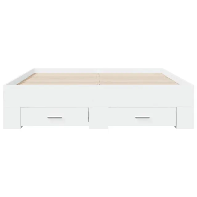 Dodajte svoji spalnici moderen pridih s tem posteljnim okvirjem s predali! Predstavlja praktičen in dekorativen dodatek za vaš bivalni prostor. Vzdržljiv material: Posteljni okvir je izdelan iz inženirskega lesa. Inženirski les se ponaša z izjemno kakovostjo, gladko površino ter močjo, stabilnostjo in odpornostjo na vlago.Trdne letvice: Letvice iz vezanega lesa omogočajo dobro porazdelitev teže in zagotavljajo, da vzmetnica ostane na mestu ob vsakem zasuku in obračanju med spanjem.Funkcija shranjevanja: Priloženi posteljni predali nudijo dovolj prostora za shranjevanje potrebščin, da bo soba čista in urejena. Dobro je vedeti:Vzmetnica ni priložena tej postelji. Ponujamo različno izbiro ležišč. V naši trgovini si lahko ogledate ustrezne vzmetnice.Barva: BelaMaterial posteljnega okvirja: Inženirski lesMaterial letvic: Vezan lesCelotne dimenzije: 193 x 138 x 32 cm (D x Š x V)Velikost primerne vzmetnice: 135 x 190 cm (Š x D) (vzmetnica ni priložena)Dimenzije predala (L): 76,5 x 31,5 x 13,5 cm (D x Š x V)Dimenzije predala (S): 49 x 31,5 x 13,5 cm (D x Š x V)Potrebno sestavljanje: DaPaket vsebuje:1 x Posteljni okvir2 x Posteljni predal (L)2 x Posteljni predal (S) 3280405