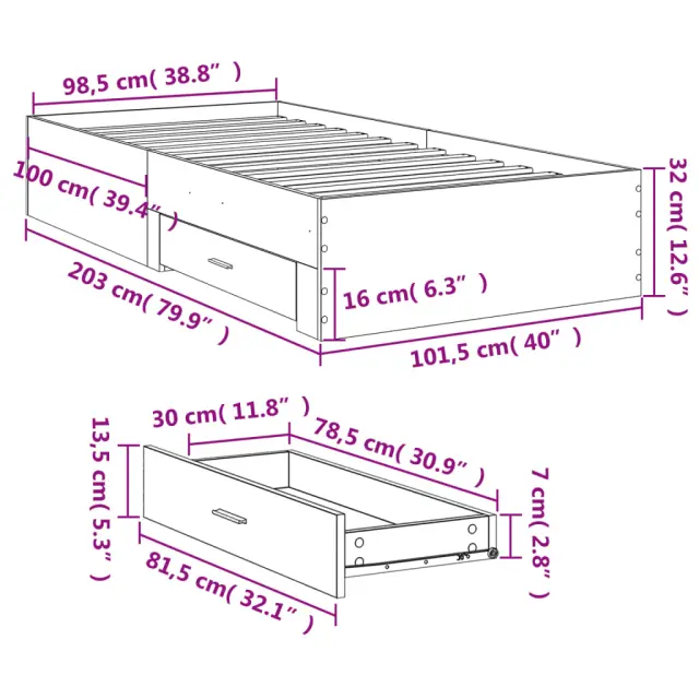 vidaXL Posteljni okvir s predali sonoma hrast 100x200cm inženirski les