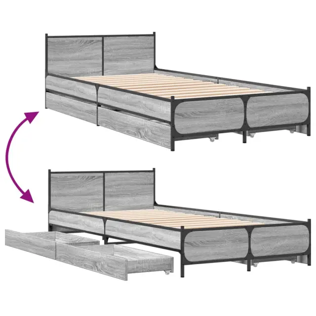 Zagotovite si boljši spanec s tem posteljnim okvirjem s predali! Je prijeten dodatek za vsako spalnico. Vzdržljiv material: Inženirski les se ponaša z izjemno kakovostjo, gladko površino ter močjo, stabilnostjo in odpornostjo na vlago. Kovinske noge: Postelja je podprta s čvrstimi kovinskimi nogami, ki zagotavljajo njeno stabilnost, varnost in trdnost. Letvice iz vezanega lesa: Letvice iz vezanega lesa omogočajo dobro porazdelitev teže in zagotavljajo, da vzmetnica ostane na mestu ob vsakem zasuku in obračanju med spanjem. Funkcija shranjevanja: Priloženi posteljni predali nudijo dovolj prostora za shranjevanje potrebščin, da bo soba čista in urejena. Dobro je vedeti:Vzmetnica ni priložena tej postelji. Ponujamo različno izbiro ležišč. V naši trgovini si lahko ogledate ustrezne vzmetnice.Barva: Siva sonomaMaterial: Inženirski les, jekloCelotne dimenzije: 193 x 78 x 56,5 cm (D x Š x V)Višina prostora pod posteljo: 14 cmDimenzije predala (vsak): 94 x 33,5 x 11,5 cm (D x Š x V)Velikost primerne vzmetnice: 75 x 190 cm (Š x D) (vzmetnica ni priložena)Potrebno sestavljanje: DaPaket vsebuje:1 x Posteljni okvir4 x Predal 3279975