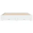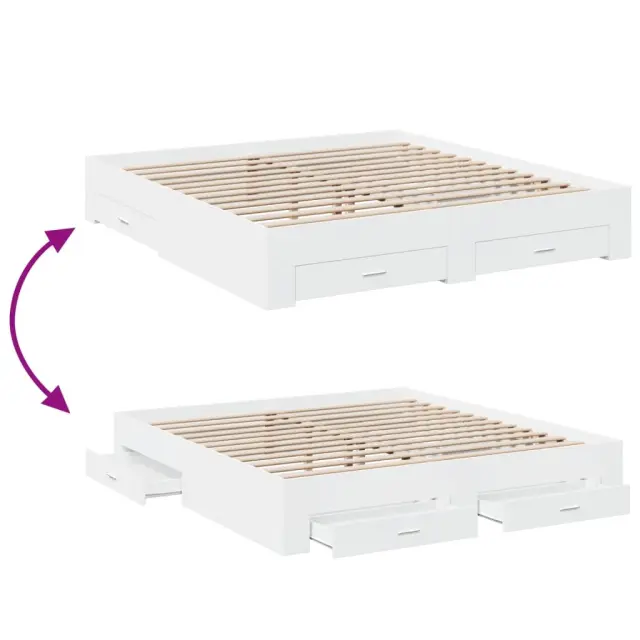 Dodajte svoji spalnici moderen pridih s tem posteljnim okvirjem s predali! Predstavlja praktičen in dekorativen dodatek za vaš bivalni prostor. Vzdržljiv material: Posteljni okvir je izdelan iz inženirskega lesa. Inženirski les se ponaša z izjemno kakovostjo, gladko površino ter močjo, stabilnostjo in odpornostjo na vlago.Trdne letvice: Letvice iz vezanega lesa omogočajo dobro porazdelitev teže in zagotavljajo, da vzmetnica ostane na mestu ob vsakem zasuku in obračanju med spanjem.Funkcija shranjevanja: Priloženi posteljni predali nudijo dovolj prostora za shranjevanje potrebščin, da bo soba čista in urejena. Dobro je vedeti:Vzmetnica ni priložena tej postelji. Ponujamo različno izbiro ležišč. V naši trgovini si lahko ogledate ustrezne vzmetnice.Barva: BelaMaterial posteljnega okvirja: Inženirski lesMaterial letvic: Vezan lesCelotne dimenzije: 203 x 203 x 32 cm (D x Š x V)Velikost primerne vzmetnice: 200 x 200 cm (Š x D) (vzmetnica ni priložena)Dimenzije predala (vsak): 81,5 x 31,5 x 13,5 cm (D x Š x V)Potrebno sestavljanje: DaPaket vsebuje:1 x Posteljni okvir4 x Posteljni predal 3280356