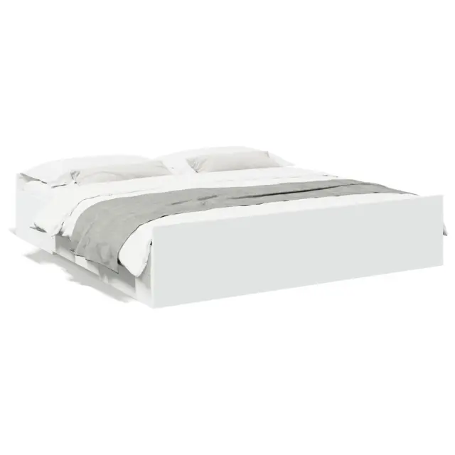vidaXL Posteljni okvir s predali bel 180x200 cm inženirski les