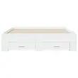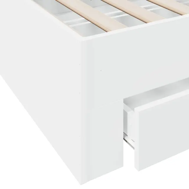 Dodajte svoji spalnici moderen pridih s tem posteljnim okvirjem s predali! Predstavlja praktičen in dekorativen dodatek za vaš bivalni prostor. Vzdržljiv material: Posteljni okvir je izdelan iz inženirskega lesa. Inženirski les se ponaša z izjemno kakovostjo, gladko površino ter močjo, stabilnostjo in odpornostjo na vlago.Trdne letvice: Letvice iz vezanega lesa omogočajo dobro porazdelitev teže in zagotavljajo, da vzmetnica ostane na mestu ob vsakem zasuku in obračanju med spanjem.Funkcija shranjevanja: Priloženi posteljni predali nudijo dovolj prostora za shranjevanje potrebščin, da bo soba čista in urejena. Dobro je vedeti:Vzmetnica ni priložena tej postelji. Ponujamo različno izbiro ležišč. V naši trgovini si lahko ogledate ustrezne vzmetnice.Barva: BelaMaterial posteljnega okvirja: Inženirski lesMaterial letvic: Vezan lesCelotne dimenzije: 193 x 143 x 32 cm (D x Š x V)Velikost primerne vzmetnice: 140 x 190 cm (Š x D) (vzmetnica ni priložena)Dimenzije predala (L): 76,5 x 31,5 x 13,5 cm (D x Š x V)Dimenzije predala (S): 51,5 x 31,5 x 13,5 cm (D x Š x V)Potrebno sestavljanje: DaPaket vsebuje:1 x Posteljni okvir2 x Posteljni predal (L)2 x Posteljni predal (S) 3280398