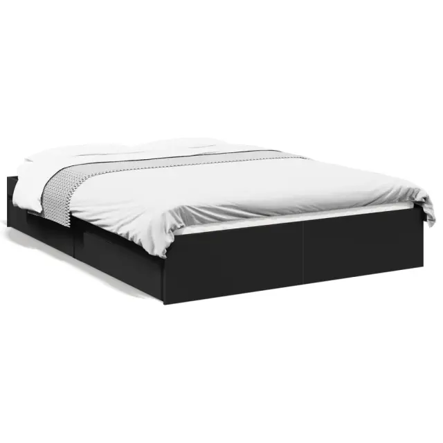 vidaXL Posteljni okvir s predali črn 140x190 cm inženirski les