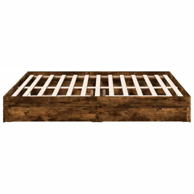 Dodajte svoji spalnici moderen pridih s tem posteljnim okvirjem s predali! Predstavlja praktičen in dekorativen dodatek za vaš bivalni prostor. Vzdržljiv material: Posteljni okvir je izdelan iz inženirskega lesa. Inženirski les se ponaša z izjemno kakovostjo, gladko površino ter močjo, stabilnostjo in odpornostjo na vlago.Trdne letvice: Letvice iz vezanega lesa omogočajo dobro porazdelitev teže in zagotavljajo, da vzmetnica ostane na mestu ob vsakem zasuku in obračanju med spanjem.Funkcija shranjevanja: Priloženi posteljni predali nudijo dovolj prostora za shranjevanje potrebščin, da bo soba čista in urejena. Dobro je vedeti:Vzmetnica ni priložena tej postelji. Ponujamo različno izbiro ležišč. V naši trgovini si lahko ogledate ustrezne vzmetnice.Barva: Dimljeni hrastMaterial posteljnega okvirja: Inženirski lesMaterial letvic: Vezan lesCelotne dimenzije: 203 x 203 x 28 cm (D x Š x V)Velikost primerne vzmetnice: 200 x 200 cm (Š x D) (vzmetnica ni priložena)Dimenzije posteljnega predala (vsak): 95,5 x 36,5 x 14 cm (D x Š x V)Potrebno sestavljanje: DaPaket vsebuje:1 x Posteljni okvir4 x Posteljni predal 3280633