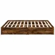 Dodajte svoji spalnici moderen pridih s tem posteljnim okvirjem s predali! Predstavlja praktičen in dekorativen dodatek za vaš bivalni prostor. Vzdržljiv material: Posteljni okvir je izdelan iz inženirskega lesa. Inženirski les se ponaša z izjemno kakovostjo, gladko površino ter močjo, stabilnostjo in odpornostjo na vlago.Trdne letvice: Letvice iz vezanega lesa omogočajo dobro porazdelitev teže in zagotavljajo, da vzmetnica ostane na mestu ob vsakem zasuku in obračanju med spanjem.Funkcija shranjevanja: Priloženi posteljni predali nudijo dovolj prostora za shranjevanje potrebščin, da bo soba čista in urejena. Dobro je vedeti:Vzmetnica ni priložena tej postelji. Ponujamo različno izbiro ležišč. V naši trgovini si lahko ogledate ustrezne vzmetnice.Barva: Dimljeni hrastMaterial posteljnega okvirja: Inženirski lesMaterial letvic: Vezan lesCelotne dimenzije: 203 x 183 x 28 cm (D x Š x V)Velikost primerne vzmetnice: 180 x 200 cm (Š x D) (vzmetnica ni priložena)Dimenzije posteljnega predala (vsak): 95,5 x 36,5 x 14 cm (D x Š x V)Potrebno sestavljanje: DaPaket vsebuje:1 x Posteljni okvir4 x Posteljni predal 3280640
