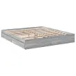 Dodajte svoji spalnici moderen pridih s tem posteljnim okvirjem s predali! Predstavlja praktičen in dekorativen dodatek za vaš bivalni prostor. Vzdržljiv material: Posteljni okvir je izdelan iz inženirskega lesa. Inženirski les se ponaša z izjemno kakovostjo, gladko površino ter močjo, stabilnostjo in odpornostjo na vlago.Trdne letvice: Letvice iz vezanega lesa omogočajo dobro porazdelitev teže in zagotavljajo, da vzmetnica ostane na mestu ob vsakem zasuku in obračanju med spanjem.Funkcija shranjevanja: Priloženi posteljni predali nudijo dovolj prostora za shranjevanje potrebščin, da bo soba čista in urejena. Dobro je vedeti:Vzmetnica ni priložena tej postelji. Ponujamo različno izbiro ležišč. V naši trgovini si lahko ogledate ustrezne vzmetnice.Barva: Siva sonomaMaterial posteljnega okvirja: Inženirski lesMaterial letvic: Vezan lesCelotne dimenzije: 203 x 203 x 28 cm (D x Š x V)Velikost primerne vzmetnice: 200 x 200 cm (Š x D) (vzmetnica ni priložena)Dimenzije posteljnega predala (vsak): 95,5 x 36,5 x 14 cm (D x Š x V)Potrebno sestavljanje: DaPaket vsebuje:1 x Posteljni okvir4 x Posteljni predal 3280634
