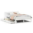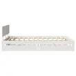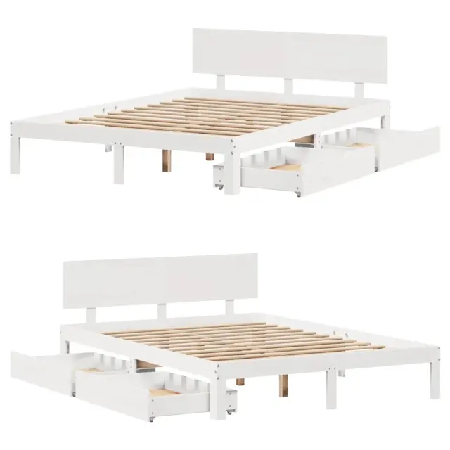 Zagotovite si boljši spanec s tem posteljnim okvirjem! Je prijeten dodatek za vsako spalnico. Stabilen in dolgotrajen okvir: Trdna borovina je znana po svoji trdnosti in trajnosti. Ravni vzorci in značilni vozli prispevajo k njenemu rustikalnemu čaru.Podnožje z letvami za optimalno podporo: Za podporo in zračnost ležišča je posteljni okvir opremljen z letvenim dnom.Dodaten prostor za shranjevanje: Ta posteljni okvir ima spodaj dva predala, ki omogočata shranjevanje predmetov, kot so dodatna posteljnina, sezonska oblačila in igrače.Vsestransko vzglavje: Ta postelja je opremljena z vzglavjem, ki zagotavlja odlično oporo hrbtu, ko sedite v postelji in berete ali gledate televizijo, hkrati pa služi tudi kot dekorativni element.Preprosto manevriranje: Ta predal za shranjevanje pod posteljo ima štiri kolesa, ki zagotavljajo gladko in lahkotno manevriranje pri drsenju pod posteljo in izpod nje. Dobro je vedeti:Vzmetnica ni priložena tej postelji. Ponujamo različno izbiro ležišč. V naši trgovini si lahko ogledate ustrezne vzmetnice.Barva: BelaMaterial: Trdna borovinaPotrebno sestavljanje: DaPostelja:Material letvic: Vezan lesCelotne dimenzije: 205,5 x 163,5 x 69,5 cm (D x Š x V)Višina ležišča, merjena od tal: 24,5 cmVelikost primerne vzmetnice: 160 x 200 cm (Š x D) (vzmetnica ni priložena)Predal:Zunanje dimenzije: 90 x 55 x 17 cm (Š x G x V)Notranje dimenzije: 81,5 x 52,5 x 10 cm (Š x G x V)Maks. nosilnost (vsaka): 20 kgS štirimi kolesiPaket vsebuje:1 x Posteljni okvir1 x Vzglavje2 x Predal 3301989