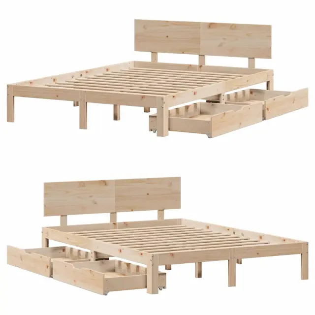 Zagotovite si boljši spanec s tem posteljnim okvirjem! Je prijeten dodatek za vsako spalnico. Stabilen in dolgotrajen okvir: Trdna borovina je znana po svoji trdnosti in trajnosti. Ravni vzorci in značilni vozli prispevajo k njenemu rustikalnemu čaru.Podnožje z letvami za optimalno podporo: Za podporo in zračnost ležišča je posteljni okvir opremljen z letvenim dnom.Dodaten prostor za shranjevanje: Ta posteljni okvir ima spodaj dva predala, ki omogočata shranjevanje predmetov, kot so dodatna posteljnina, sezonska oblačila in igrače.Vsestransko vzglavje: Ta postelja je opremljena z vzglavjem, ki zagotavlja odlično oporo hrbtu, ko sedite v postelji in berete ali gledate televizijo, hkrati pa služi tudi kot dekorativni element.Preprosto manevriranje: Ta predal za shranjevanje pod posteljo ima štiri kolesa, ki zagotavljajo gladko in lahkotno manevriranje pri drsenju pod posteljo in izpod nje. Dobro je vedeti:Vzmetnica ni priložena tej postelji. Ponujamo različno izbiro ležišč. V naši trgovini si lahko ogledate ustrezne vzmetnice.Material: Trdna borovina (neobdelana)Potrebno sestavljanje: DaPostelja:Material letvic: Vezan lesCelotne dimenzije: 205,5 x 163,5 x 69,5 cm (D x Š x V)Višina ležišča, merjena od tal: 24,5 cmVelikost primerne vzmetnice: 160 x 200 cm (Š x D) (vzmetnica ni priložena)Predal:Zunanje dimenzije: 90 x 55 x 17 cm (Š x G x V)Notranje dimenzije: 81,5 x 52,5 x 10 cm (Š x G x V)Maks. nosilnost (vsaka): 20 kgS štirimi kolesiPaket vsebuje:1 x Posteljni okvir1 x Vzglavje2 x Predal 3301988