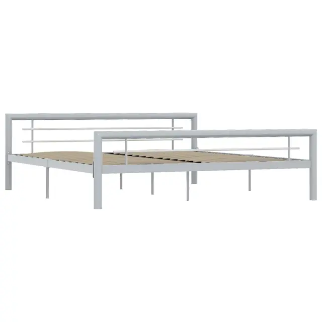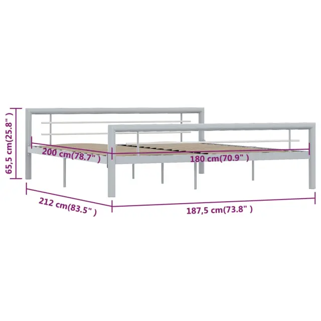 Z našim kovinskim posteljnim okvirjem lahko v svoji spalnici ustvarite elegantno in klasično vzdušje! Posteljni okvir ima trdno konstrukcijo iz kovine. Trdne letve nudijo zadostno podporo in so zelo udobne. Vse te lastnosti vam bodo zagotovo nudile odličen nočni spanec! Posteljni okvir je primeren za vzmetnico velikosti 180 x 200 cm. Sestava je preprosta. Upoštevajte, da paket vsebuje samo posteljni okvir s podom iz letvic. Vzmetnica ni priložena. V naši trgovini si lahko ogledate primerno vzmetnico.Barva: Siva in belaMaterial: KovinaCelotna velikost: 212 x 187,5 x 65,5 cm (D x Š x V)Velikost primerne vzmetnice: 180 x 200 cm (Š x D) (vzmetnica ni priložena)Spalna višina, merjena od tal: 32 cmPriloženo letveno dno: DaPotrebno sestavljanje: Da 284561