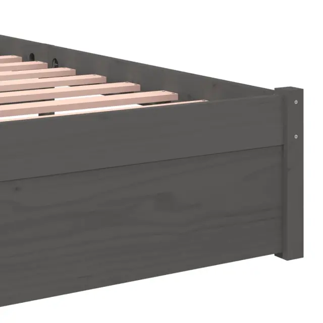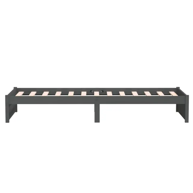 Ustvarite moderno spalnico s tem lesenim posteljnim okvirjem! To je praktičen in dekorativen dodatek za vaše notranje prostore. Vrhunska trdna borovina: Trdna borovina je čudovit naravni material. Borovina ima ravne vzorce, grče pa dajejo materialu njegov značilen, rustikalen videz.Stabilen posteljni okvir: Lesen okvir zagotavlja trdnost in stabilnost.Trdne letvice: Letvice iz vezanega lesa omogočajo dobro porazdelitev teže in zagotavljajo, da vzmetnica ostane na mestu ob vsakem zasuku in obračanju med spanjem.Primerna uporaba: Ta enojna postelja je odlična rešitev za majhne prostore, večnamenske sobe, enoposteljna ležišča in starejše otroke. Ne glede na vaše potrebe ali načrte ta enojna postelja ustreza različnim potrebam! Opomba:Paket vsebuje samo posteljni okvir. Vzmetnica ni priložena. V naši trgovini si lahko ogledate ustrezne vzmetnice.Ta posteljni okvir je primeren za vzmetnico velikosti 75 x 190 cm (2FT6 Small Single).Barva: SivaMaterial posteljnega okvirja: Trdna borovinaMaterial letvic: Vezan lesCelotne dimenzije: 195,5 x 80,5 x 31 cm (D x Š x V)Velikost primerne vzmetnice: 75 x 190 cm (Š x D) (2FT6 Small Single) (vzmetnica ni priložena)Potrebno sestavljanje: Da 814911
