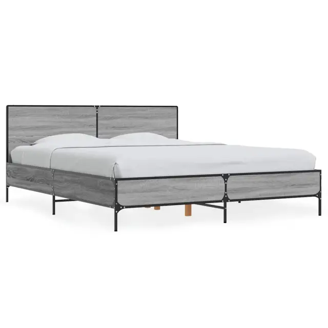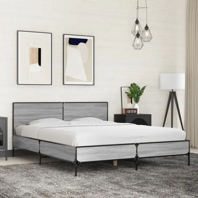 Zagotovite si boljši spanec s tem posteljnim okvirjem! Je prijeten dodatek za vsako spalnico. Vzdržljiv material: Inženirski les se ponaša z izjemno kakovostjo, gladko površino ter močjo, stabilnostjo in odpornostjo na vlago. Kovinske noge in letvice iz vezanega lesa: Okvir postelje je opremljen s kovinskimi nogami in letvicami iz vezanega lesa, ki ležišču nudijo potrebno oporo in zračnost.Odlična podpora: Vzglavje zagotavlja odlično oporo hrbtu, ko sedite v postelji in berete ali gledate televizijo. Dobro je vedeti: Vzmetnica ni priložena tej postelji. Ponujamo različno izbiro ležišč. V naši trgovini si lahko ogledate ustrezne vzmetnice.Barva: Siva sonomaMaterial posteljnega okvirja: Inženirski les, kovinaMaterial letvic: Vezan lesCelotne dimenzije: 203 x 153 x 80 cm (D x Š x V)Velikost primerne vzmetnice: 150 x 200 cm (Š x D) (vzmetnica ni priložena)Potrebno sestavljanje: Da 3280005