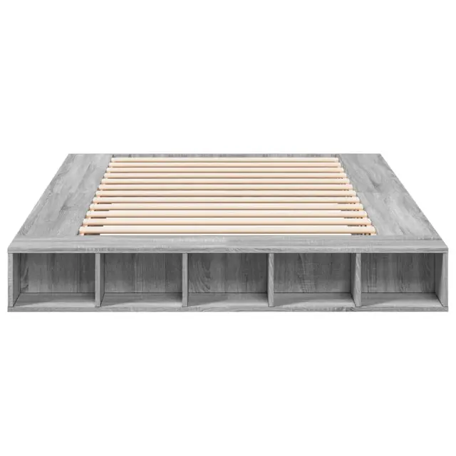 Zagotovite si boljši spanec s tem posteljnim okvirjem! Je prijeten dodatek za vsako spalnico. Vzdržljiv material: Posteljni okvir je izdelan iz inženirskega lesa. Inženirski les se ponaša z izjemno kakovostjo, gladko površino ter močjo, stabilnostjo in odpornostjo na vlago.Letvice za optimalno podporo: Okvir postelje je opremljen z letvicami, ki zagotavljajo osnovno podporo in zračnost vašega ležišča.Funkcija shranjevanja: Ta posteljni okvir ima odprte predelke za dobro organizacijo revij, knjig, igrač in drugih manjših predmetov. Dobro je vedeti:Vzmetnica ni priložena tej postelji. Ponujamo različno izbiro ležišč. V naši trgovini si lahko ogledate ustrezne vzmetnice.Barva: Siva sonomaMaterial posteljnega okvirja: Inženirski lesMaterial letvic: Vezan lesCelotne dimenzije: 200 x 150 x 20 cm (D x Š x V)Dimenzije predelkov (vsak): 34,5/28 x 18,5 x 17 cm (D x Š x V)Velikost primerne vzmetnice: 150 x 200 cm (Š x D) (vzmetnica ni priložena)Potrebno sestavljanje: Da 3280473