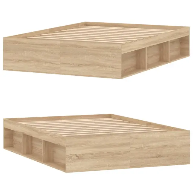 Ustvarite moderno spalnico s tem posteljnim okvirjem! To bo praktičen in okrasen dodatek za vaše notranje prostore. Vzdržljiv material: Inženirski les se ponaša z izjemno kakovostjo, gladko površino ter močjo, stabilnostjo in odpornostjo na vlago.Letvice iz vezanega lesa: Letvice iz vezanega lesa omogočajo dobro porazdelitev teže in zagotavljajo, da vzmetnica ostane na mestu ob vsakem zasuku in obračanju med spanjem.Dodaten prostor za shranjevanje: Postelja za goste ima skupno 6 predelkov na obeh straneh postelje za shranjevanje stvari, kot so knjige, lončnice in drugi okraski. Dobro je vedeti:Vzmetnica ni priložena tej postelji. Ponujamo različno izbiro ležišč. V naši trgovini si lahko ogledate ustrezne vzmetnice.Barva: Sonoma hrastMaterial posteljnega okvirja: Inženirski les, trdna borovinaMaterial letvic: Vezan lesCelotne dimenzije: 193 x 138 x 35 cm (D x Š x V)Primerna velikost vzmetnice (vzmetnica ni vključena): 135 x 190 cm (Š x D) (4FT6 Double)Potrebno sestavljanje: Da 3203910