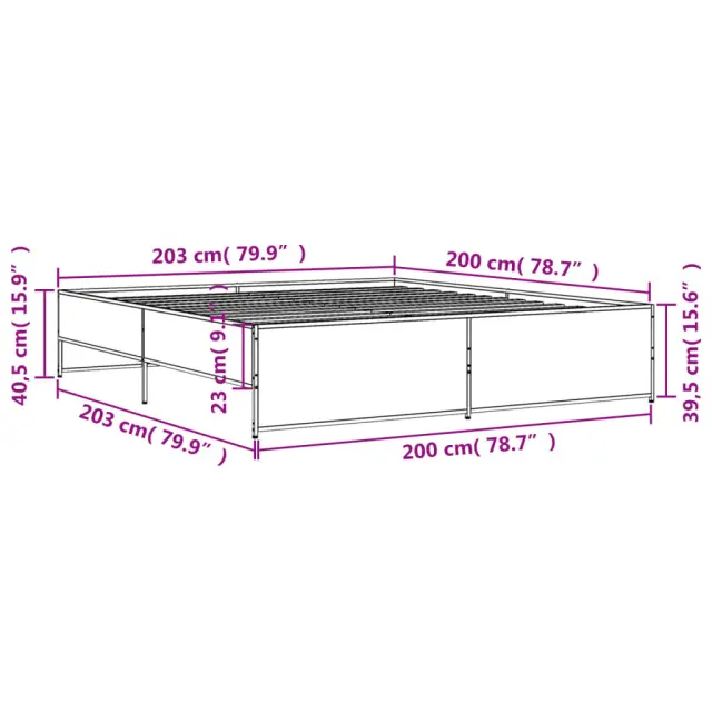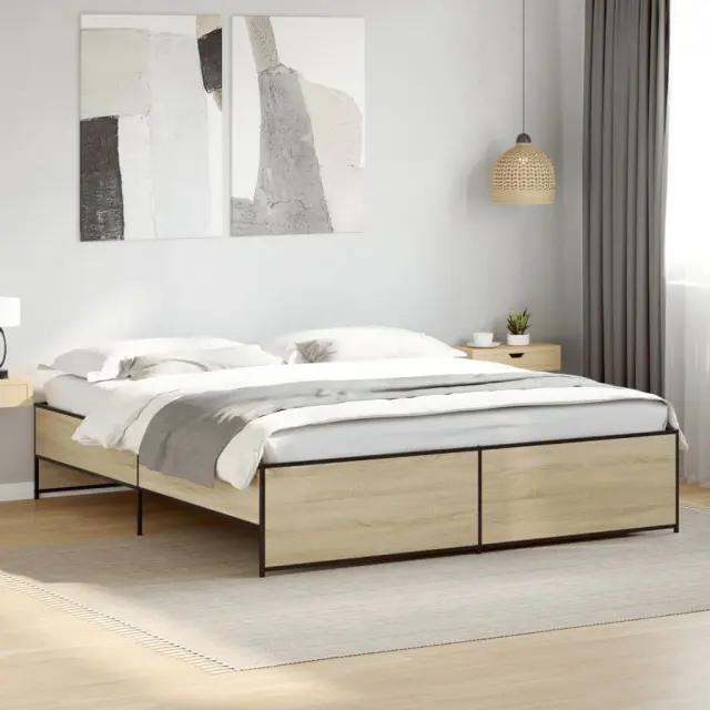 vidaXL Posteljni okvir sonoma hrast 200x200 cm inž. les in kovina