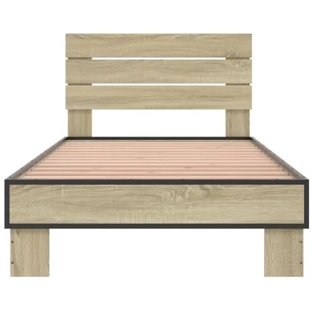 Zagotovite si boljši spanec s tem posteljnim okvirjem! Je prijeten dodatek za vsako spalnico. Vzdržljiv material: Inženirski les se ponaša z izjemno kakovostjo, gladko površino ter močjo, stabilnostjo in odpornostjo na vlago.Kovinske noge: Postelja je podprta s čvrstimi kovinskimi nogami, ki zagotavljajo njeno stabilnost, varnost in trdnost.Letvice iz vezanega lesa: Letvice iz vezanega lesa omogočajo dobro porazdelitev teže in zagotavljajo, da vzmetnica ostane na mestu ob vsakem zasuku in obračanju med spanjem.Odlična podpora: Vzglavje zagotavlja odlično oporo hrbtu, ko sedite v postelji in berete ali gledate televizijo. Dobro je vedeti:Vzmetnica ni priložena tej postelji. Ponujamo različno izbiro ležišč. V naši trgovini si lahko ogledate ustrezne vzmetnice.Barva: Sonoma hrastMaterial posteljnega okvirja: Inženirski les, kovinaMaterial letvic: Vezan lesCelotne dimenzije: 203 x 93 x 81 cm (D x Š x V)Velikost primerne vzmetnice: 90 x 200 cm (Š x D) (vzmetnica ni priložena)Maksimalna nosilnost: 100 kgPotrebno sestavljanje: Da 845743