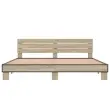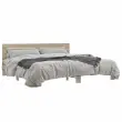 Zagotovite si boljši spanec s tem posteljnim okvirjem! Je prijeten dodatek za vsako spalnico. Vzdržljiv material: Inženirski les se ponaša z izjemno kakovostjo, gladko površino ter močjo, stabilnostjo in odpornostjo na vlago. Letvice iz vezanega lesa: Letvice iz vezanega lesa omogočajo dobro porazdelitev teže in zagotavljajo, da vzmetnica ostane na mestu ob vsakem zasuku in obračanju med spanjem.Odlična podpora: Vzglavje zagotavlja odlično oporo hrbtu, ko sedite v postelji in berete ali gledate televizijo. Dobro je vedeti: Vzmetnica ni priložena tej postelji. Ponujamo različno izbiro ležišč. V naši trgovini si lahko ogledate ustrezne vzmetnice.Barva: Sonoma hrastMaterial posteljnega okvirja: Inženirski les, kovinaMaterial letvic: Vezan lesCelotne dimenzije: 203 x 203 x 81 cm (D x Š x V)Velikost primerne vzmetnice: 200 x 200 cm (Š x D) (vzmetnica ni priložena)Potrebno sestavljanje: Da 3280128