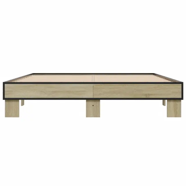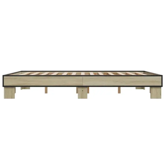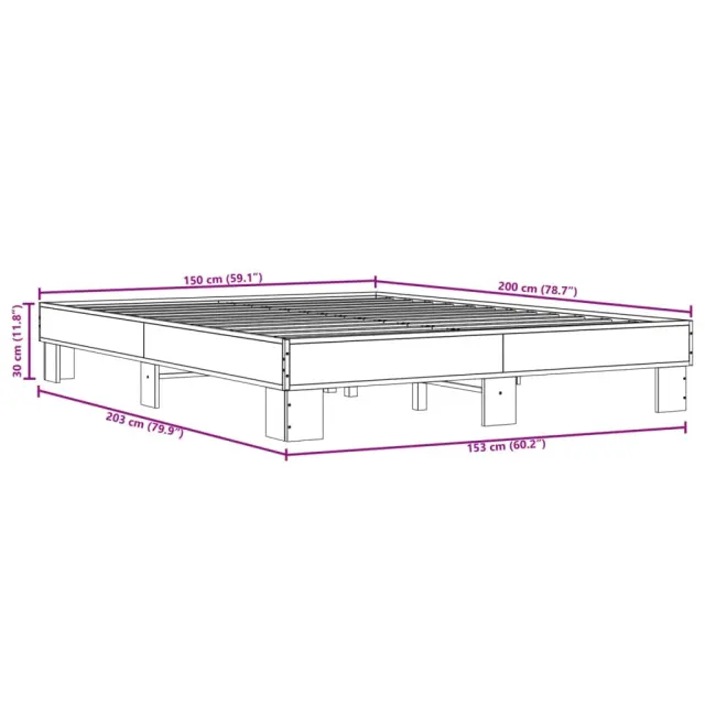 Zagotovite si boljši spanec s tem posteljnim okvirjem! Je prijeten dodatek za vsako spalnico. Vzdržljiv material: Inženirski les se ponaša z izjemno kakovostjo, gladko površino ter močjo, stabilnostjo in odpornostjo na vlago. Podporne noge: Postelja je podprta s čvrstimi nogami, ki zagotavljajo njeno stabilnost, varnost in trdnost.Letvice iz vezanega lesa: Letvice iz vezanega lesa omogočajo dobro porazdelitev teže in zagotavljajo, da vzmetnica ostane na mestu ob vsakem zasuku in obračanju med spanjem. Dobro je vedeti: Vzmetnica ni priložena tej postelji. Ponujamo različno izbiro ležišč. V naši trgovini si lahko ogledate ustrezne vzmetnice.Barva: Sonoma hrastMaterial posteljnega okvirja: Inženirski les, kovinaMaterial letvic: Vezan lesCelotne dimenzije: 203 x 153 x 30 cm (D x Š x V)Velikost primerne vzmetnice: 150 x 200 cm (Š x D) (vzmetnica ni priložena)Potrebno sestavljanje: Da 3280233