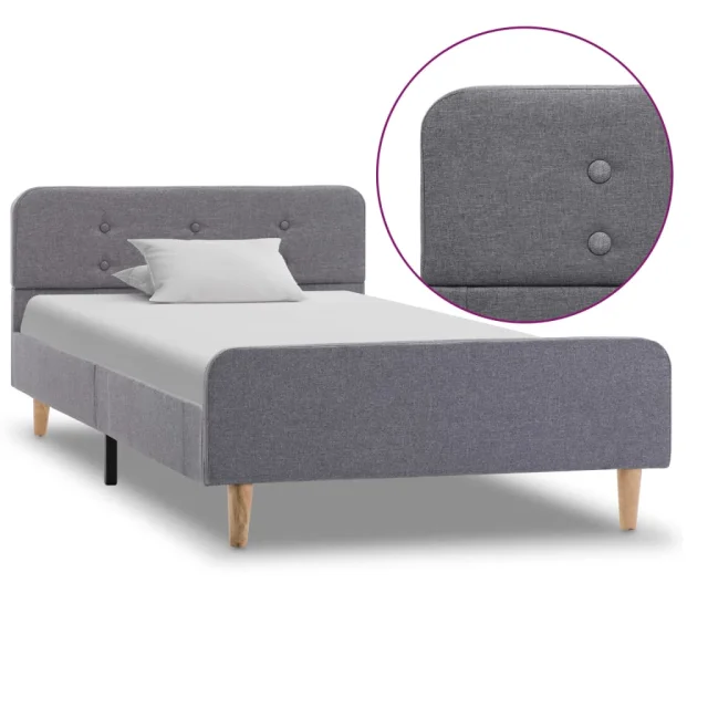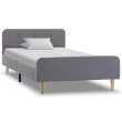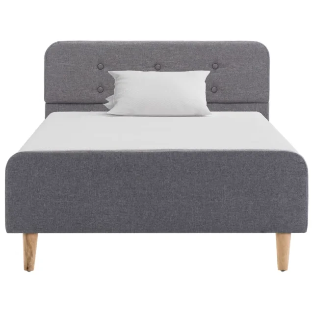 Ta posteljni okvir je prepoznaven po svojem preprostem in elegantnem dizajnu, zato bo dekorju v vaši spalnici dodal pridih elegantnega šarma. Izdelan je iz lesa in mediapana, zato je ta posteljni okvir precej trden in trpežen. Jeklene noge s prašnim premazom prispevajo k dodatni trpežnosti postelje. Poleg tega je postelja oblečena v trpežno blago, zato je zelo lepa in preprosta za čiščenje. Ta posteljni okvir je primeren za vzmetnico velikosti 90 x 200 cm.