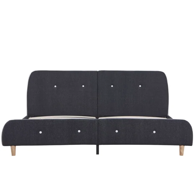 Ta posteljni okvir je prepoznaven po svojem preprostem in elegantnem dizajnu, zato bo dekorju v vaši spalnici dodal pridih elegantnega šarma. Izdelan je iz lesa in železa, zato je ta posteljni okvir precej trden in trpežen. Lesene noge prispevajo k dodatni trpežnosti postelje. Poleg tega je postelja oblečena v vzdržljivo blago, zato je lepa in preprosta za čiščenje. Ta posteljni okvir je primeren za vzmetnico velikosti 160 x 200 cm.