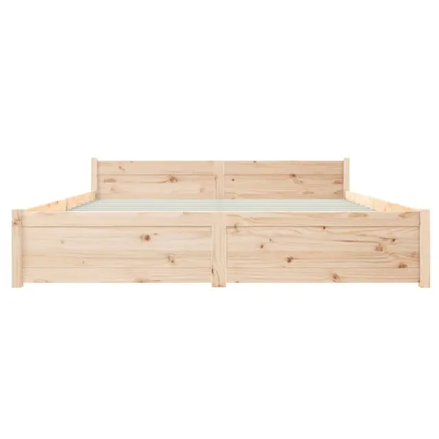 Ustvarite moderno spalnico s tem lesenim posteljnim okvirjem! To je praktičen in dekorativen dodatek za vaše notranje prostore. Vrhunska trdna borovina: Trdna borovina je čudovit naravni material. Borovina ima ravne vzorce, grče pa dajejo materialu njegov značilen, rustikalen videz.Močan posteljni okvir: Lesen okvir zagotavlja trdnost in stabilnost. Letvice iz vezanega lesa omogočajo dobro porazdelitev teže in zagotavljajo, da vzmetnica ostane na mestu ob vsakem zasuku in obračanju med spanjem.Udobno vzglavje: Klasično vzglavje omogoča udoben počitek med branjem ali gledanjem filma. Opomba:Paket vsebuje samo posteljni okvir. Vzmetnica ni priložena. V naši trgovini si lahko ogledate ustrezne vzmetnice.Ta posteljni okvir je primeren za vzmetnico velikosti 150x200 cm (5FT King Size).Material posteljnega okvirja: Trdna borovina (neobdelana)Material letvic: Vezan lesCelotne dimenzije: 205,5 x 155,5 x 51 cm (D x Š x V)Velikost primerne vzmetnice: 150 x 200 cm (Š x D) (5FT King Size) (vzmetnica ni priložena)Potrebno sestavljanje: DaPaket vsebuje:1 x Posteljni okvir1 x Vzglavje 815049