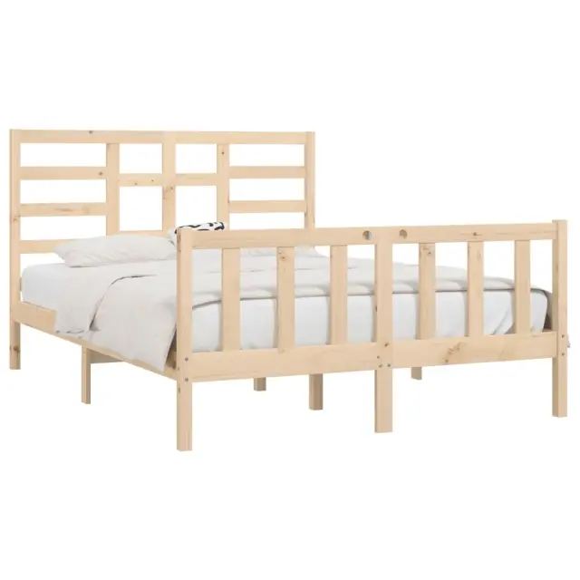Ustvarite moderno spalnico s tem lesenim posteljnim okvirjem! To je praktičen in dekorativen dodatek za vaše notranje prostore. Trdna borovina: Trdna borovina je čudovit naravni material. Borovina ima ravne vzorce, grče pa dajejo materialu njegov značilen, rustikalen videz.Trdne letvice: Letvice iz vezanega lesa omogočajo dobro porazdelitev teže in zagotavljajo, da vzmetnica ostane na mestu ob vsakem zasuku in obračanju med spanjem.Privlačen dizajn: Vzglavje in vznožje sta oblikovana tako dekorativno kot tudi praktično. Dodaja edinstven stil in udobje. Dobro je vedeti:Paket vsebuje samo posteljni okvir. Vzmetnica ni priložena. V naši trgovini si lahko ogledate ustrezne vzmetnice.Nekateri deli vzglavja so zaradi prostorskih omejitev zapakirani v škatlah v okvirju postelje.Ta posteljni okvir je primeren za vzmetnico velikosti 150x200 cm (5FT King Size).Material posteljnega okvirja: Trdna borovina (neobdelana)Material letvic: Vezan lesCelotne dimenzije: 205,5 x 156 x 104 cm (D x Š x V)Dimenzije vzglavja: 156 x 4 x 104 cm (Š x G x V)Velikost primerne vzmetnice: 150 x 200 cm (Š x D) (5FT King Size) (vzmetnica ni priložena)Potrebno sestavljanje: DaPaket vsebuje:1 x Posteljni okvir1 x Vzglavje1 x Vznožje 3107618