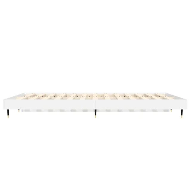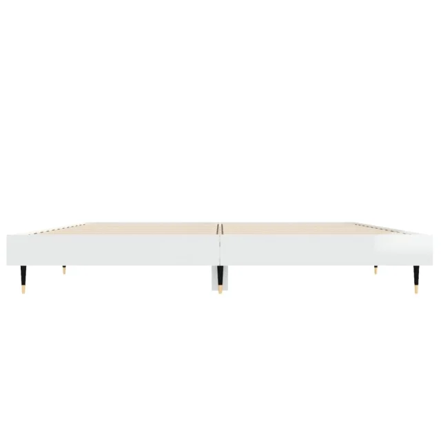 vidaXL Posteljni okvir visok sijaj bel 135x190 cm inženirski les