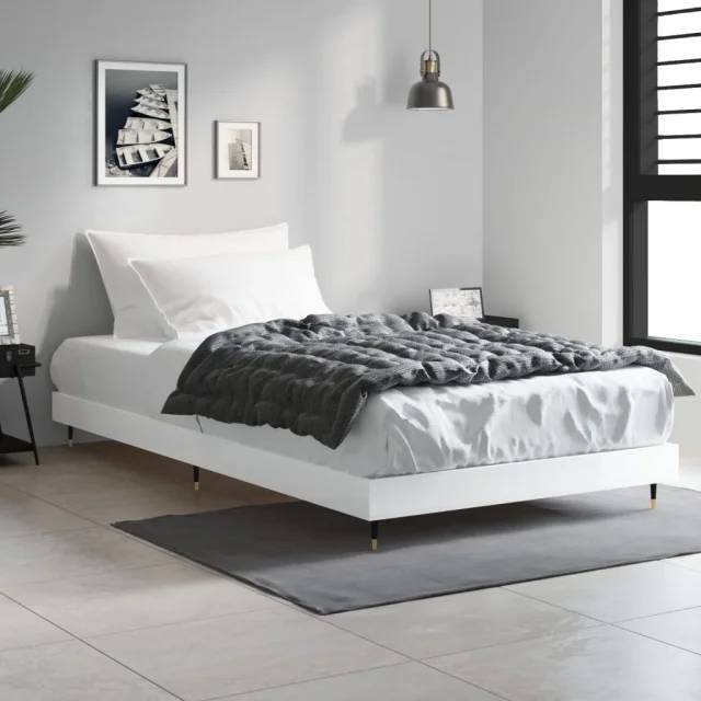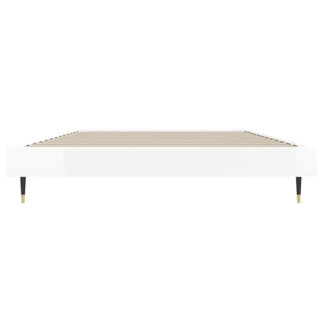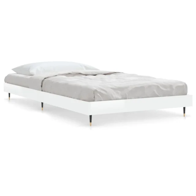 vidaXL Posteljni okvir visok sijaj bel 90x190 cm inženirski les