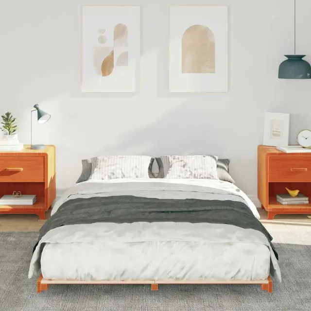 vidaXL Posteljni okvir Voščeno rjava 135 x 190 cm Trdna borovina