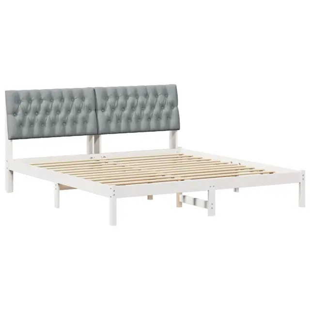 vidaXL Posteljni okvir z oblazinjenim vzglavjem Bela 180 x 200 cm