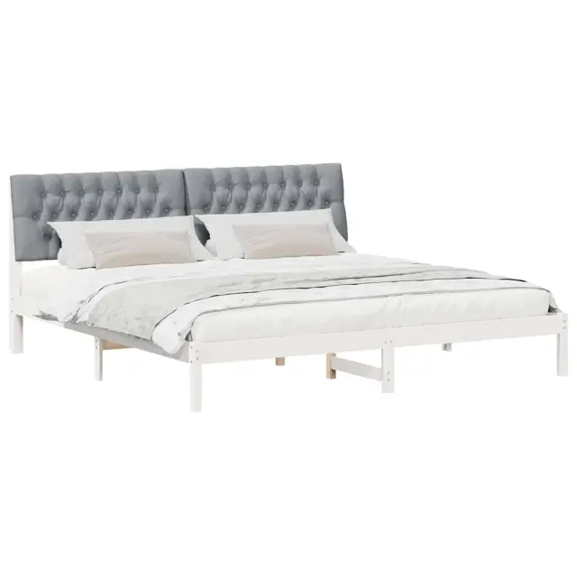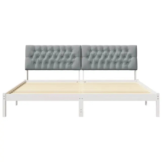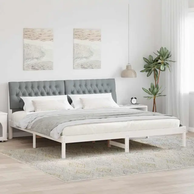 vidaXL Posteljni okvir z oblazinjenim vzglavjem Bela 200 x 200 cm