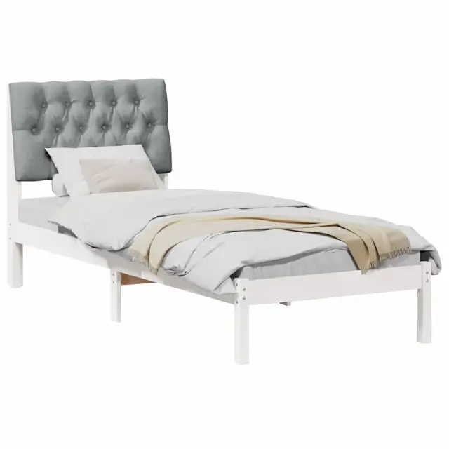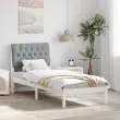vidaXL Posteljni okvir z oblazinjenim vzglavjem Bela 75 x 190 cm