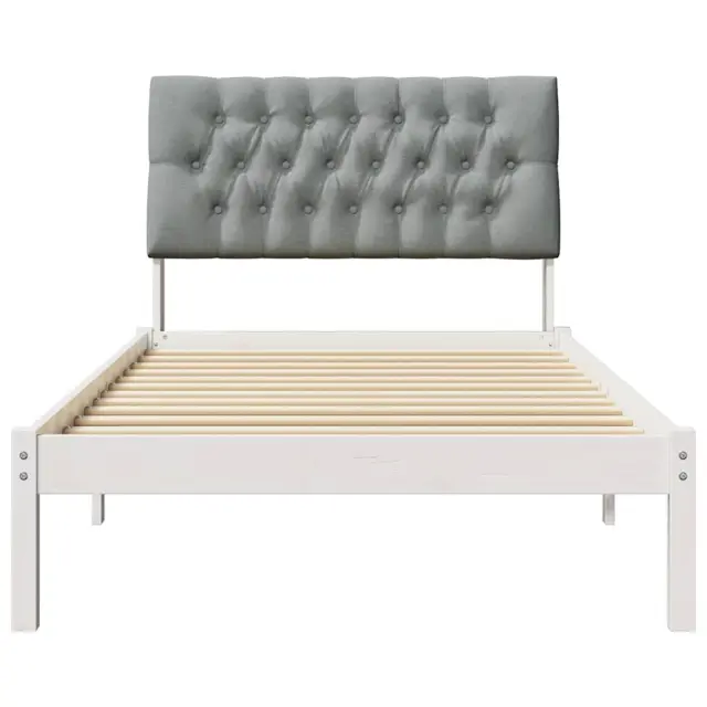 vidaXL Posteljni okvir z oblazinjenim vzglavjem Bela 100 x 200 cm